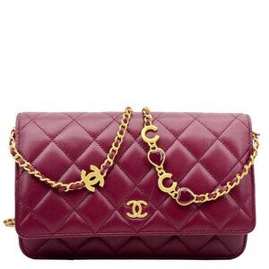 Chanel Coco Hearts Quilted Leather Wallet On Chain WOC Burgundy