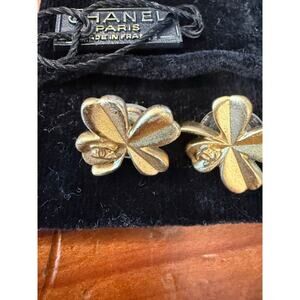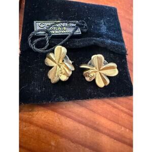 Chanel Coco Mark Clover Earrings Gold C2641