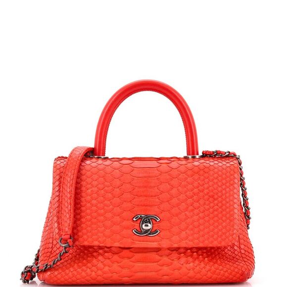 Chanel Coco Top Handle Bag Python Mini Red