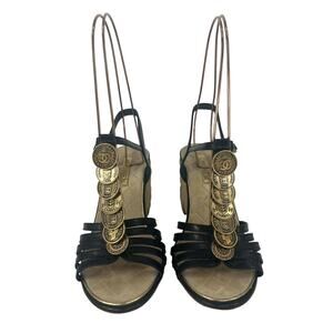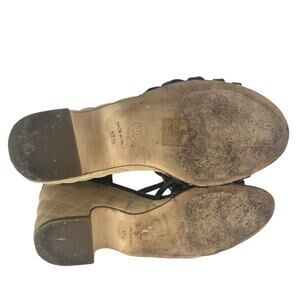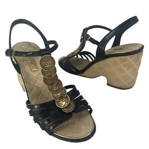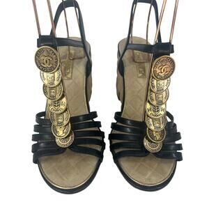 Chanel Coin Medallion Quilted Suede & Leather Heeled Wedge Sandals.