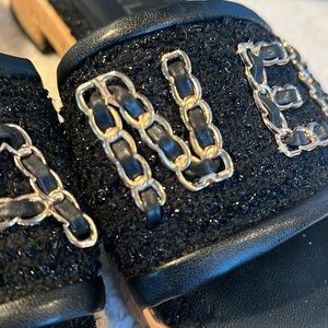 Chanel Cork Chain-Link Slides -