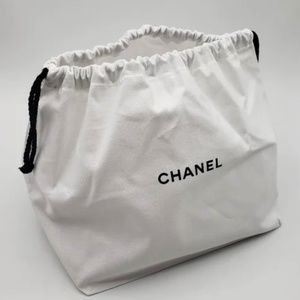 Chanel Cotton Pouch Drawstring Dustbag Color: White with Black Logo Brand New without tags