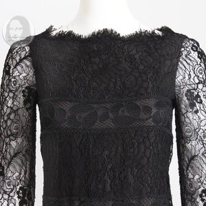 Chanel Couture Cocktail Dress Black Silk Guipure Lace Floral Numbered Vintage