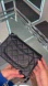 Black lambskin, silver-hardware, interlocking logo, chain link crossbody strap, front snap closure, single small exterior pocket, burgundy grosgrain interior