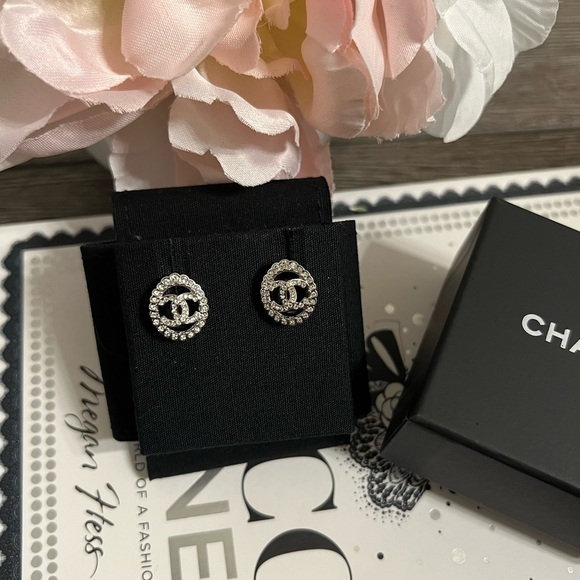 Chanel Crystal CC Oval Stud Earrings - AUTH
