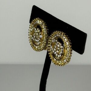 Chanel Crystal / Gold Tone Double C Faux Clip-On Earrings
