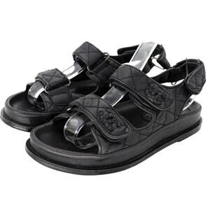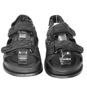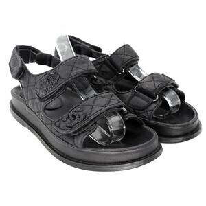 You'll truly be in utter love with these sandals from Chanel as they are stylish and modern. They've been crafted from leather and designed with their signature diamond shape pattern these have been sold out and extremely rare no longer available, Velcro straps and the CC black chainlink logo on the uppers. The sandals are just perfect to nail a chic casual look. The soles show wear from light use. The uppers show wear and creasing, but otherwise is in good condition.