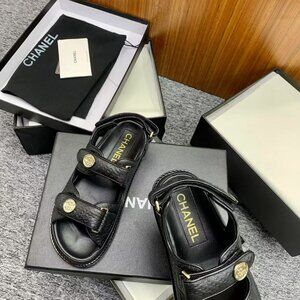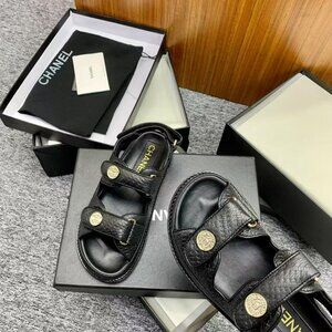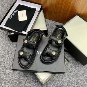 Chanel Dad Sandals Black Calfskin Velcro sandals