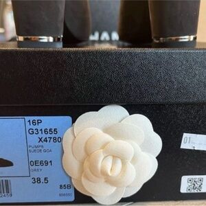 Sophisticated Chanel heels in dark gray suede. Perfect for elevating any outfit with elegance.