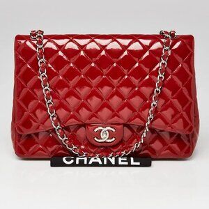 Chanel Dark Red Quilted Patent Leather Classic Maxi Double Flap Bag