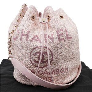 Chanel Deauville Lurex Boucle Drawstring Bag Pink