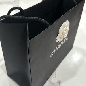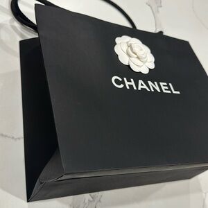 NEW!!! Chanel Designer Black Bag! Features the Iconic CHANEL Logo Print! Perfect for Use as Gifting CHANEL Clutch Wallet or Any Accessory!! Includes Original White Ribbon with CHANEL Logo Print with White Wrap Paper! Medium Sized Bag! NEW without tag!