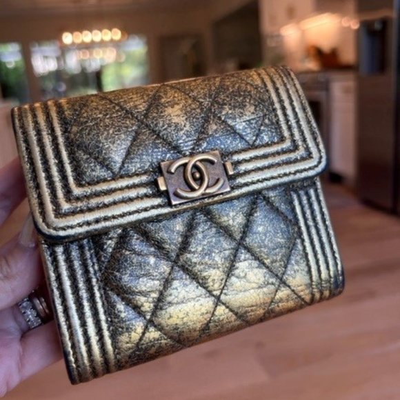Chanel Distressed Gold Metallic Boy Wallet - 24 Series