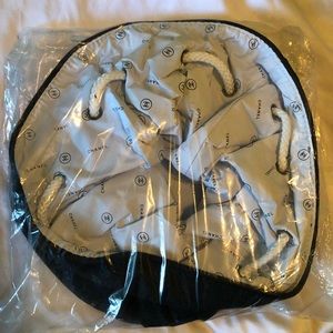 Chanel drawstring backpack. Never been used. Only taken out of plastic so I could take these pictures. This bag is very versatile. The inside is even waterproof if you wanted to take it to the beach and put some beverages inside. If you go to the beach might as well go in style, right? Of course it could be used as a daily pocketbook.