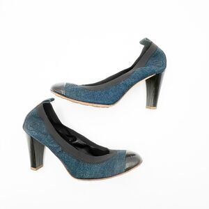 Authentic Chanel Cap Toe CC Denim Elastic Pumps Heels