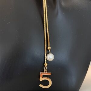 Chanel Elegant Gold Necklace with Pearl and Number 5 Pendant