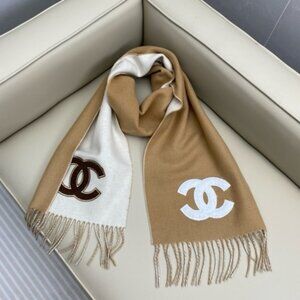 Chanel Elegant Shawl: Dual Hues, Prominent Interlocking C’s