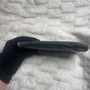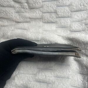 Please examine the images closely to see the condition. It's still usable; the zipper works, and the coin compartment is clean. It includes the cards with the code. The main damage is on two corners. Let me know if you have any questions. The wallet shows wear and stains from use; it was my favorite for a while.