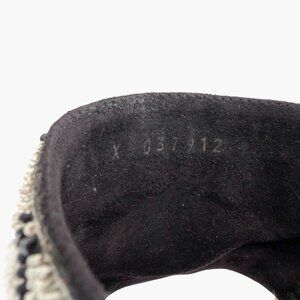 These Chanel mule sandals feature black and white pearl-style beaded uppers with quilted accents and CC logos. Designed with open round toes and low 1.25-inch block heels, they combine timeless elegance with Chanel’s signature craftsmanship — a chic choice for dressy casual wear or warm-weather occasions. Includes original box.