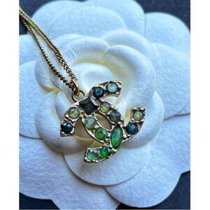 Chanel Emerald and Green CC Gold Necklace, Coco Marked