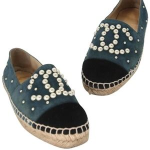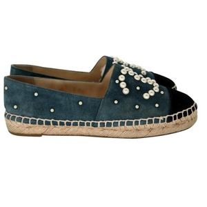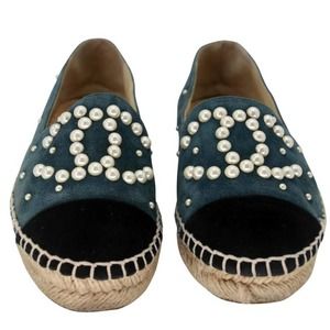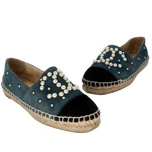 Chanel Espadrille 35 Suede and Pearl Cc Flats CC-S0207P-C019