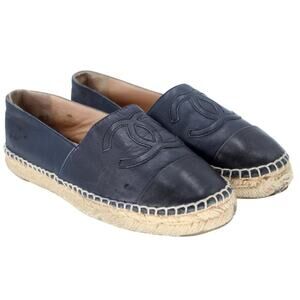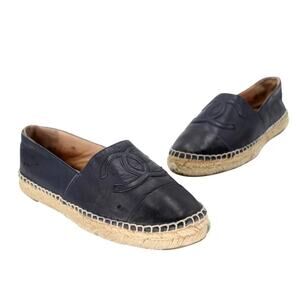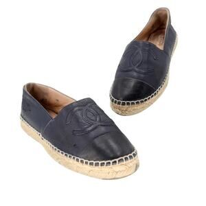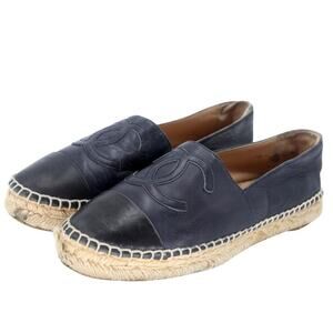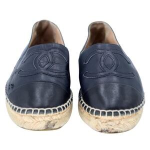 Chanel Espadrille 37 Lambskin Leather Cc Cap Toe Flats CC-0502N-0128