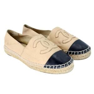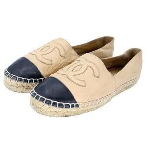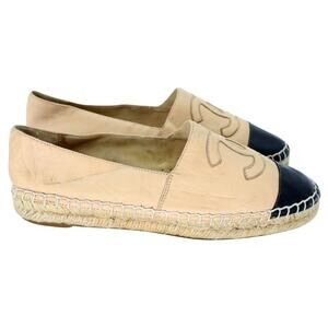 Chanel Espadrille 37 Leather Ballet Cap Toe Flats CC-S0304P-0011