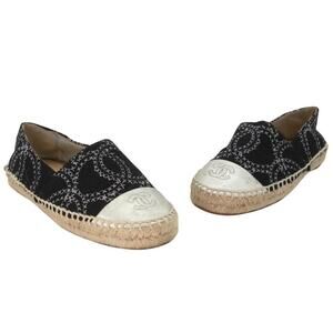 Chanel Espadrille 38 Tweed Cc Cap Toe Flats CC-0525N-0208