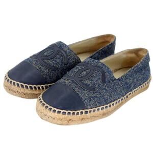 Chanel Espadrille 38 Wool Blue Tweed Cap Toe Cc Sandals CC-S0207P-C038