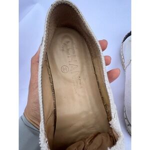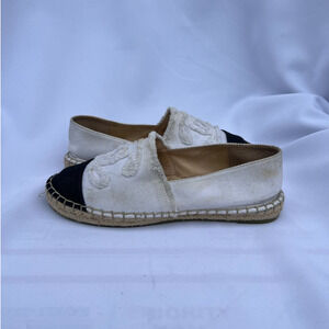Chanel Espadrille Ballerina Canvas Linen Flats EU 37. White/Black. Worn a handful of times and minimak stais