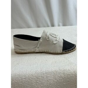 Chanel Espadrilles CC Logo Canvas Slip On Flats Shoes Size 39