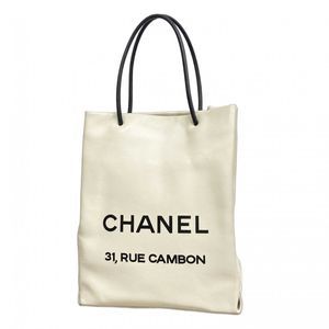 Chanel Essential Tote Bag White Leather Silver Hardware Pre-owned Women's