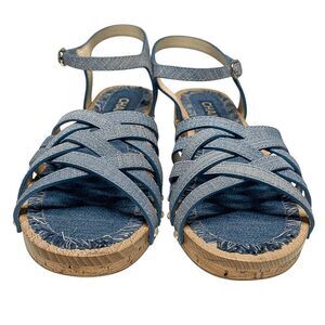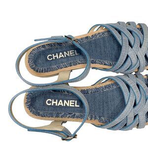 Chanel Fantasy Blue Calf Leather CC Logo Wooden Platform Sandals EU 38 US 7-7.5
