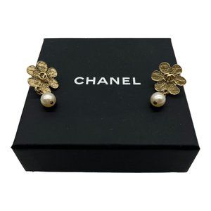 Chanel Faux Pearl Floral CC Drop Gold Tone EarringsEst. Retail $550.00