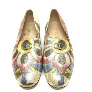 Chanel Floral Interlocking CC Logo Flats Loafers