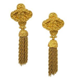 Chanel Fringe Dangle Earrings Clip-On Gold 94A 115399