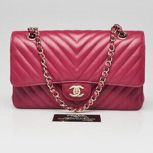 Chanel Fuchsia Chevron Quilted Lambskin Leather Classic Medium Double Flap Bag
