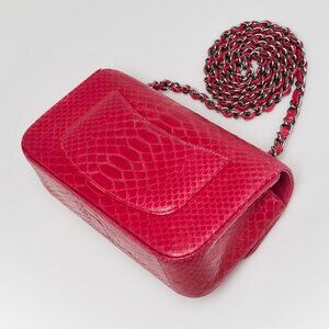 Chanel Fuchsia Python Classic Rectangular Mini Flap Bag