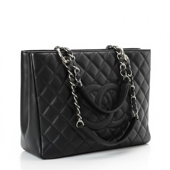 Chanel GST Black Caviar Leather Tote – Silver Hardware, Quilted Chain Shoulder
