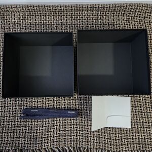 Includes box, large white camellia flap card, and limited holiday blue shimmer ribbon. Box measures 10.75" wide, 10.25" long, 6.5" tall.