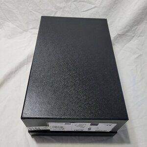 This Authentic Chanel Gift Shoe Box is a medium-sized, rectangular box made of black cardboard, measuring 8.5 x 13 x 5 inches. It is designed for all occasions and can be used as a multipurpose storage box. The box features a solid pattern and is branded with the iconic Chanel logo, making it suitable for advertising purposes. Perfect for adults, this gift box is a stylish and practical way to store or present items.