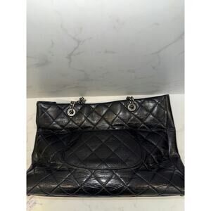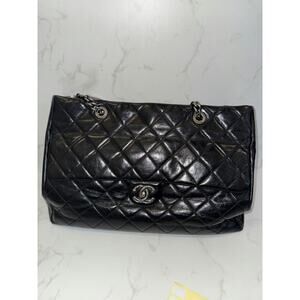 Chanel Glazed Calfskin Quilted Large Duo Color Tote in Black
