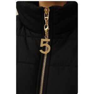 Elegant Chanel-inspired gold charm featuring the iconic number 5 and a small round medallion with the logo engraving. The lobster clasp makes it versatile and easy to attach or remove.