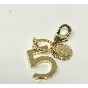 Chanel Gold 5 Charm Keychain Bag Zipper Pendant Accessory Authentic Style
