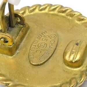 Chanel Gold Black Button Earrings Clip-On 95C 181880