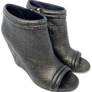 Chanel Gold Black Distressed Open Toe Wedge Booties 38.5 / 7.5