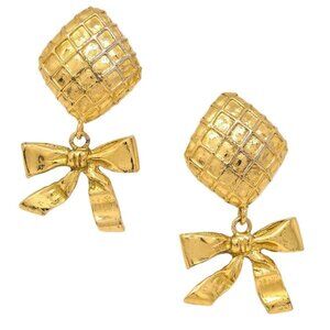 Chanel Gold Bow Rhombus Earrings Clip-On 194982
