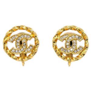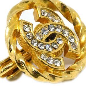 Chanel Gold Button Earrings Clip-On Rhinestone 2137 185029