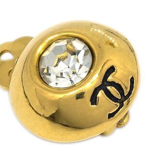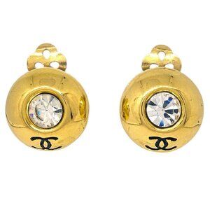 Chanel Gold Button Earrings Clip-On Rhinestone