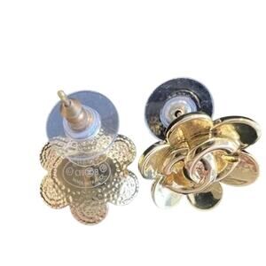 Chanel Gold Camellia Flower CC Stud Earrings Fall 2019 Collection (CCXX027)